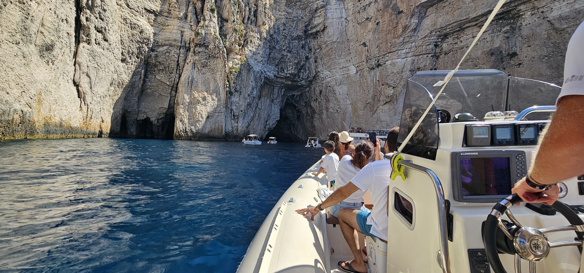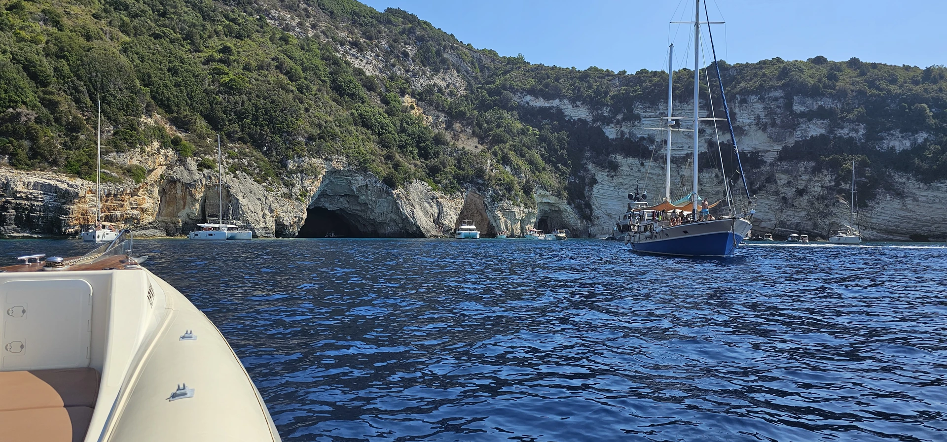 Κατά τη διάρκεια της περιήγησης με πλοίο στους Παξούς και τους Αντίπαξους μπορείτε να εξερευνήσετε ένα φυσικό φαινόμενο που εκτιμάται πλήρως μόνο από το νερό. Μια σειρά από ασβεστολιθικούς σχηματισμούς, σμιλεμένους σε χιλιάδες χρόνια, δημιουργούν μια αλλιώτικη εμπειρία όπου το φως του ήλιου μεταμορφώνει τη θάλασσα σε μια φωτεινή μπλε σκηνή. Αυτό που κάνει τα σπήλαια πιο άξια επίσκεψης δεν είναι μόνο η γεωλογική τους δομή αλλά το φως τους. Σε ορισμένα σημεία της ημέρας, οι ηλιαχτίδες διασχίζουν τα καθαρά νερά και αντανακλούν τον λαμπερό ασβεστολιθικό βυθό, γεμίζοντας το εσωτερικό του σπηλαίου με μια απόκοσμη μπλε λάμψη. Το αποτέλεσμα αλλάζει κατά τη διάρκεια της ημέρας – βαθύτερο και πιο έντονο το πρωί και αστραφτερό το απόγευμα, αλλά δεν είναι πάντα αξιοσημείωτο. Μην χάσετε την ευκαιρία να ανακαλύψετε όσο το δυνατόν περισσότερα κρυφά σημεία των Παξών και των Αντίπαξων σε μια μέρα..